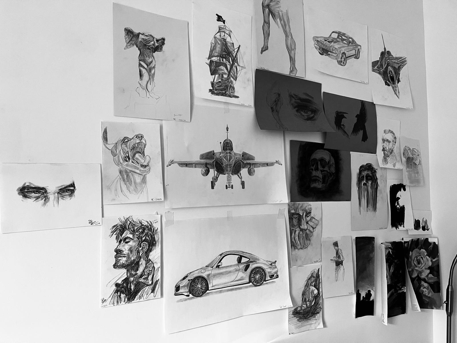 Pour vous donner un peu plus de détail sur moi et mes interets, j'ai commencé le dessin fin 2023. A la base j'y connaissais pas grand chose. J'était pas très bon mais avait une grande soif d'apprendre et de progresser. Alors petit à petit j'ai suivis des cours en lignes sur youtube et ai beaucoup pratiqué. Après environ 8/10 mois, j'avais atteint le niveau de l'image à gauche. (Ce sont les miens oui) Je partage ça parce que c'est un thème récurrent dans ma vie... A la base, par défaut, je suis pas très bon. Surement un peu dessous de la moyenne. Mais dans beaucoup de domaines tel que le dessin, la peinture, la course à pied, la musculation/powerlifting... je me suis prouvé que je pouvais y arriver en y mettant des efforts.